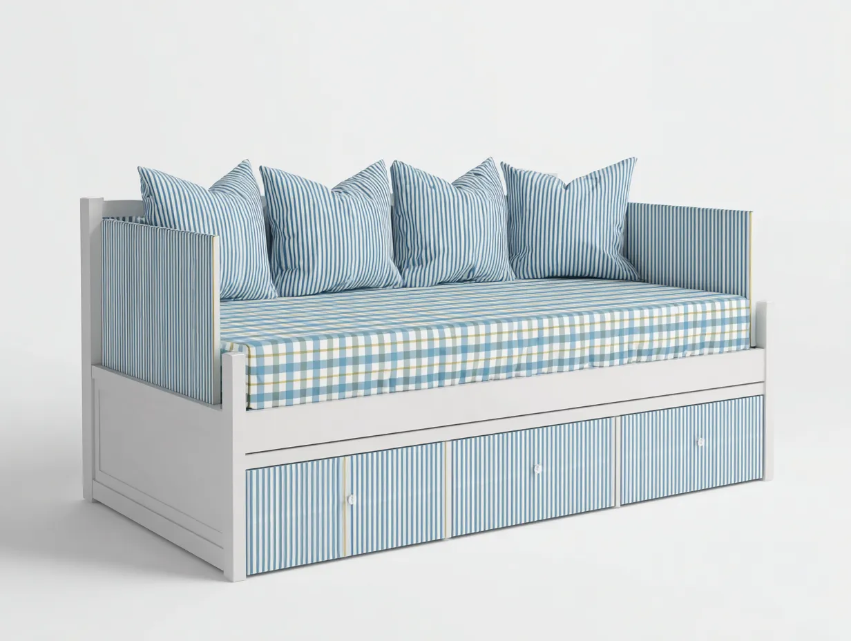 Dieses Schlafsofa ist als komfortable Sitz- und Liegelösung für Wohnräume Kinderzimmer oder Gästezimmer konzipiert. Die klare Konstruktion mit integrierter Aufbewahrungsfunktion unterstützt eine ordentliche Raumgestaltung und eine vielseitige Nutzung im Alltag.